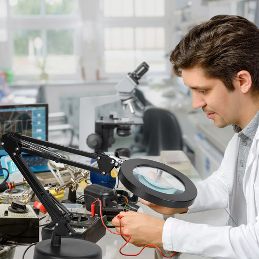 LED Magnifier Desk Lamp 8x - Swing Arm Reading Light With Clamp