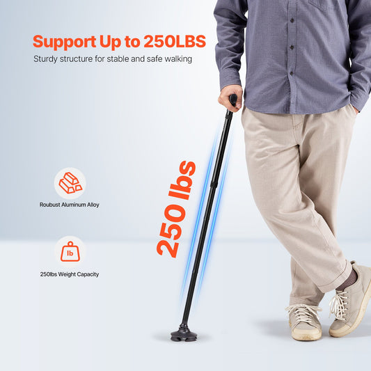 Walking Cane with 8-Level Adjustable Height & 4-Pronged Base - 250 lbs Capacity